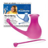 Rosa nässköljningskanna i plast med måttsked för saltet. Bruksanvisning medföljer